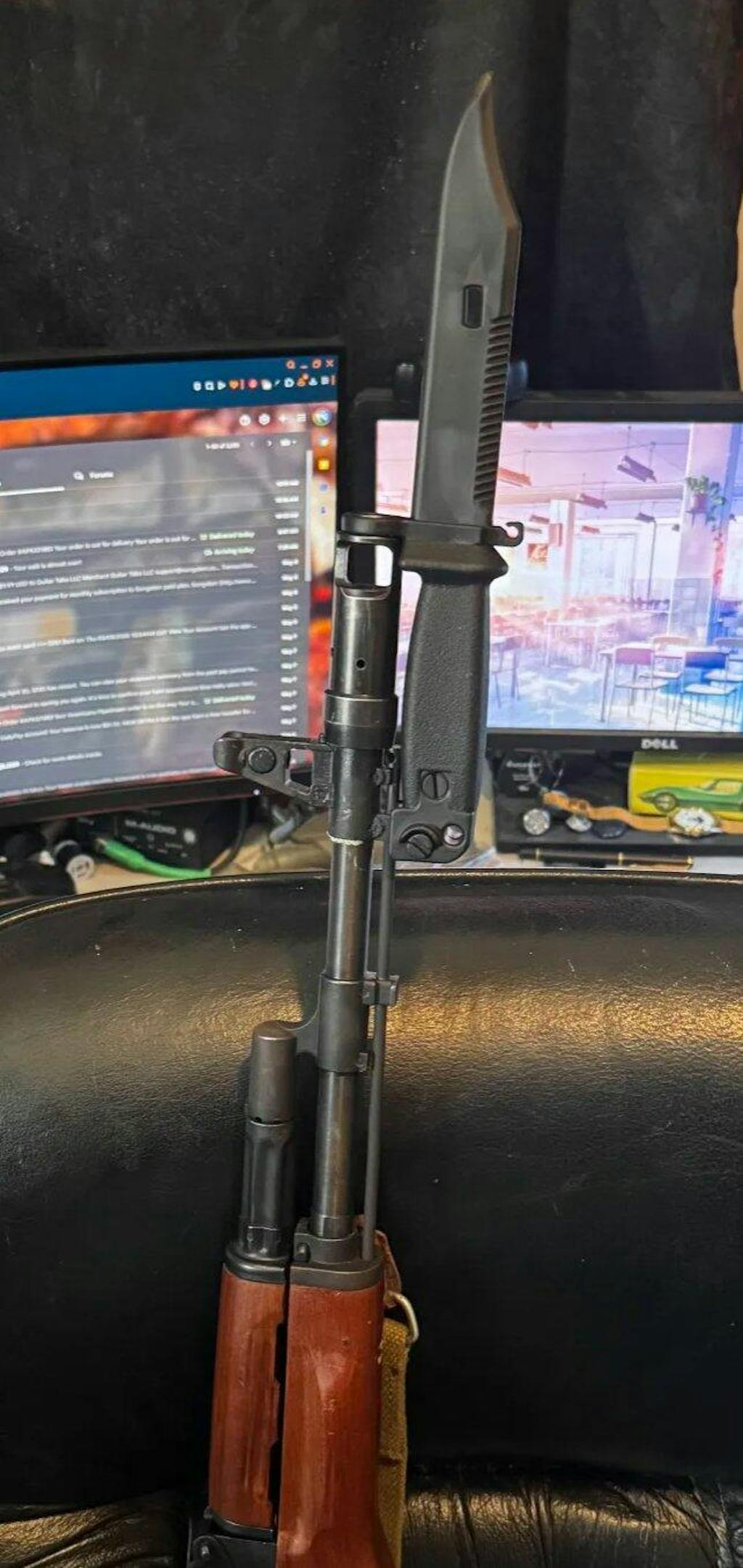 A rubber training bayonet for AK rifles. Perfect for airsoft! Unissued conidtion.